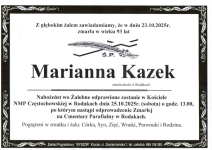 Zmarła śp. Marianna KAZEK (lat 93) – (Rodaki). Pogrzeb śp. Marianny Kazek odbędzie się w dniu 25 października 2025 r. Nabożeństwo żałobne o godz. 13.00 w Kościele Parafialnym … Czytaj całość