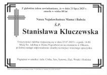 Zmarła śp. Stanisława KLUCZEWSKA (lat 80) – (Olkusz). Pogrzeb śp. Stanisławy Kluczewskiej odbędzie się w dniu 25 lipca 2025 r. Nabożeństwo żałobne o godz. 14.00 w Domu Pogrzebowym … Czytaj całość