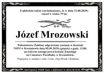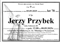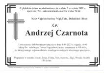 Zmarł śp. Andrzej WRÓBEL (lat 69) – (Lgota Wolbromska). Pogrzeb śp. Andrzeja Wróbla odbędzie się w dniu 13 września 2025 r. Nabożeństwo żałobne o godz. 13:00 w Kościele … Czytaj całość