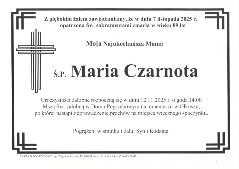 Zmarła śp. Maria CZARNOTA (lat 89) – (Olkusz).